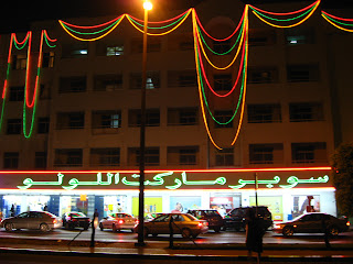 Você deve estar se perguntando: "e eu com isso?" É que de repente, olhando para o supermercado eu me deparei com mais uma chance de praticar uma boa ação durante o ramadã: ensinar aos meus pobres-e-ignorantes-leitores-com-ranho-no-nariz como se escreve "supermarket" em árabe. Não é genial???? Ebaaaaaaa!!!!! Estou muito feliz: vou praticar uma boa ação. Então vamos lá. Enquanto isso, vai virando a borda de baixo da camiseta pra tirar essa gosma verde porque odeio gente que chupa nariz (e tampouco serei eu a limpar essa camisa verde-musgo).